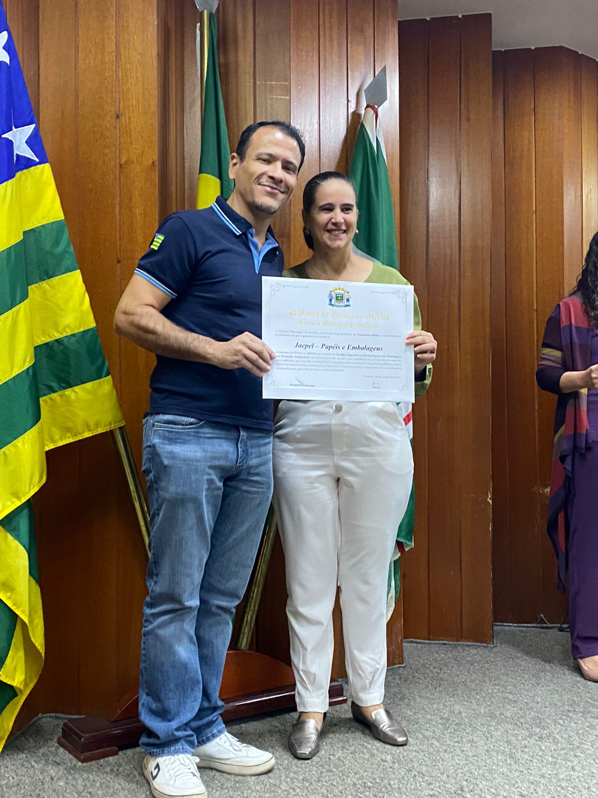 A Jaepel foi homenageada pela Câmara Municipal de Goiânia, no mês de maio, com o Certificado de Honra ao Mérito. A honraria, concedida em cerimônia oficial da Câmara de Vereadores, reconhece o significativo trabalho da empresa na preservação e recuperação do Rio Meia Ponte.