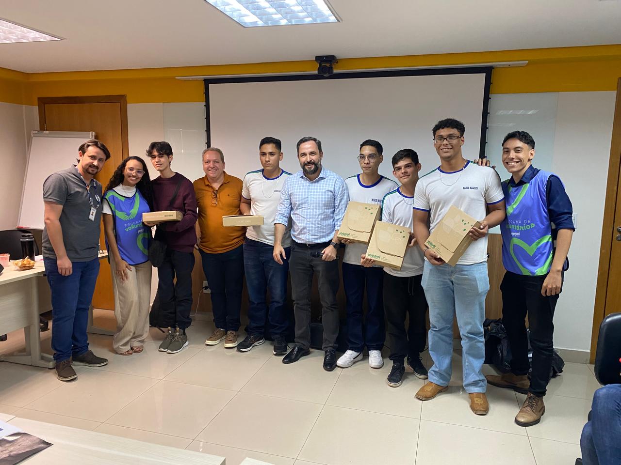Ao final do evento, o grupo responsável pela “Caixa ECOBOX” foi reconhecido pelo excelente trabalho e recebeu um presente especial da Jaepel.